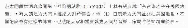 当时方大同还提到:“虽然我身体不舒服,但我还有音乐梦想。”